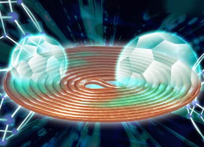フラーレンはバッキーボールと同じ構造をしている為、四次元世界と三次元世界の接点として働くと考えました。様々なフラーレンを取り寄せ試作を繰り返し誕生したコイルです。 す