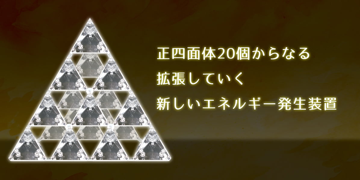 カタカムナ ゴッドピラミッド![]() カタカムナ・ゴッド・ピラミッド 開発者メッセージあらゆるエネルギーは人間の意識に呼応して生まれます。信じられないかもしれませんが、意識がエネルギーを生み出す源なのです。私たちが今まで使ってきたエネルギーは振動エネルギー(波動エネルギーともいう)です。これまで私たちはこのエネルギーを使って現実を創造してきました。 いま、私たちは新しいエネルギーをこのピラミッドを介して創造します。 新しいエネルギーは振動するものではありません。 それは人の外側に拡張するだけでなく、同時に人の内側(ハートの内側)へも拡張していきます。 新しいエネルギーは、人の意識とピラミッドが統合したことによって生まれたものです。 今、新しいエネルギーはあなたとともにあります。 あなたがカタカムナ・ゴッド・ピラミッドに意識を向けるとき、またそばにいるとき、あなたのいる周囲の空間は全く新しいエネルギーで満ちた空間になるでしょう。 アトランティスやレムリアで成し遂げられなかった、新しいエネルギーを私たちは創造することができます。 そしてこれを使うことができるのです。 このピラミッドは、私の夢の中にカタカムナの神様がわざわざ現れ、手取り足取り作り方を指示されたものだからなのです。 カタカムナ・ゴッド・ピラミッド一つで、20m四方をカバーできてしまうほどの力があります。 |